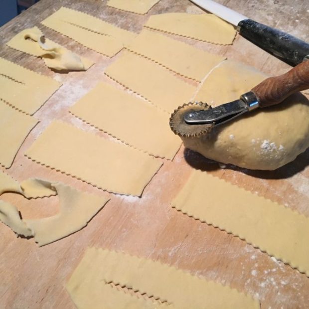 ②麺棒かパスタマシーンで薄く延ばし、お好みの形に切り分ける。