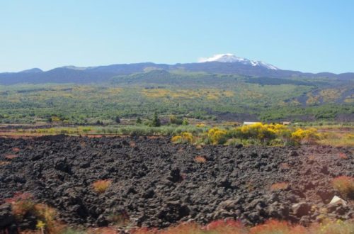 エトナ山は、今も頻繁に噴火が起こる活火山。周囲には火山のミネラル豊富なブドウ畑が点在します。