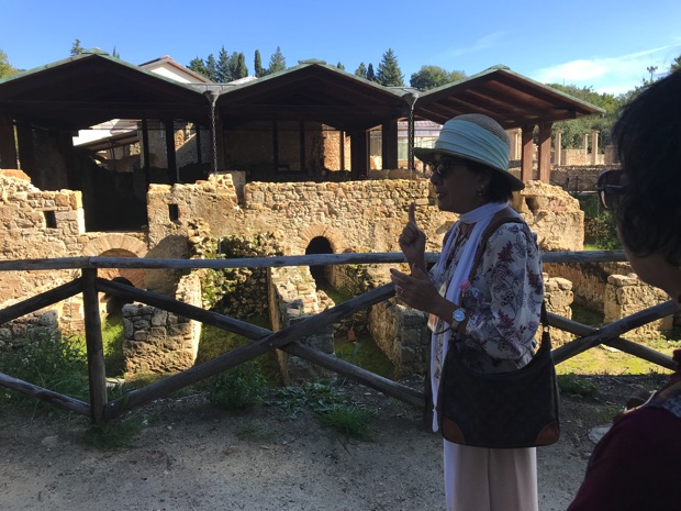 各部屋の機能や機能に合わせたモザイク。古代ローマ人の生活への豊かなこだわりが見て取れて、古代さえ身近に感じることができます。外には、古代の水洗トイレも!古代ローマ人は清潔好きですね〜。
