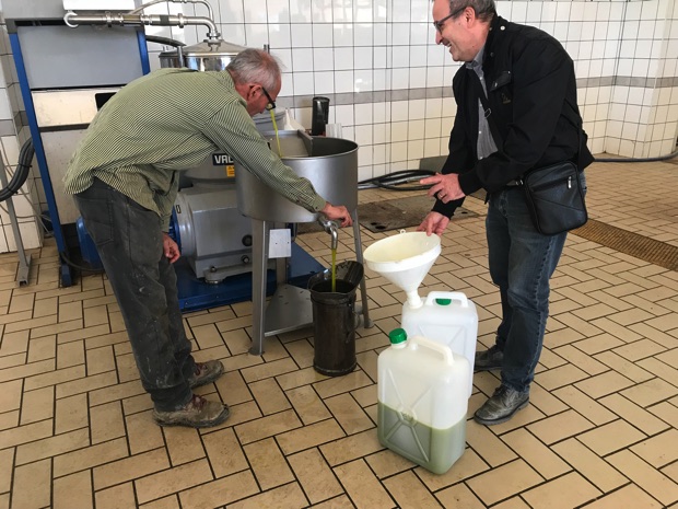 農家さん一軒一軒が、フラントイオを所有しているわけではないので、市営や私営のフラントイオが頼みの綱。持ち込んで絞ってもらいます。