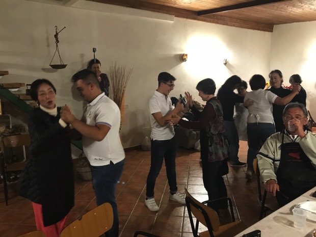 シチリア民謡ダンスのステップは、めっちゃ難しいですが、農家さんたちに手取り足取り。相当カロリーを消費したことでしょう。