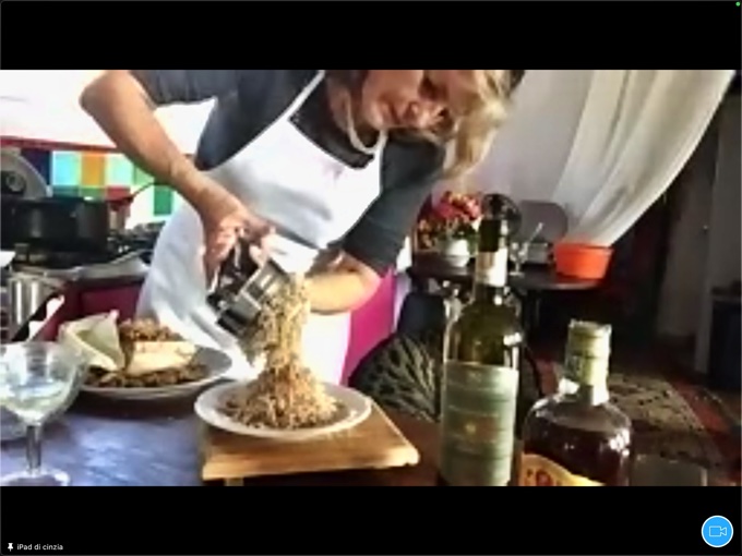 スライスは、豚が少し冷えてからがキレイに切れます。冷める間に、アルネイスワインや栗と豚にまつわるピエモンテの昔話を聞いて…チンチアさんのレッスンは、そんなおしゃべりも楽しいひととき。おばあちゃんの知恵袋(美しいアラカンです)のようなお話が飛び出してきます。