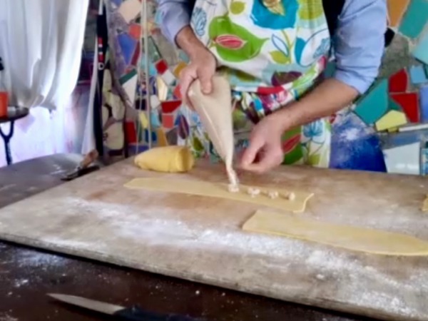 伝統料理”アニョロッティ・デル・プリン”作りと、手土産にもなる簡単な伝統菓子”ブルッティ・エ・ブオニ”に挑戦です。
