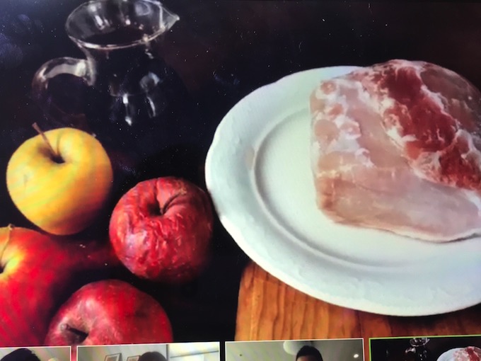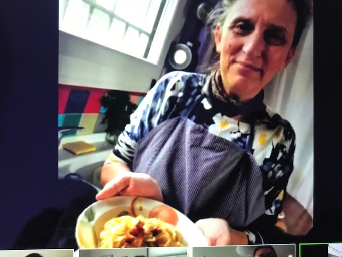 包丁で切るタリアテッレ調理中〜ZOOMの画面から