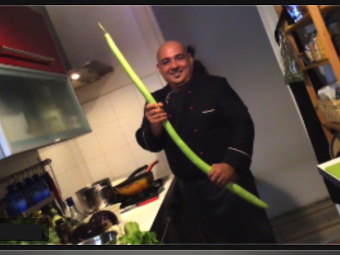 市場直送のテネルーミやズッキーネルンゲ、丸々のチュニジアナスなどなどとパオロ先生&アシスタント(ボン先輩)