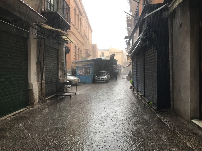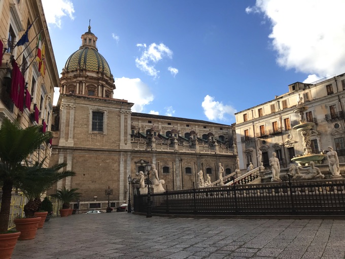 美しい教会で雨宿りをしながら、「まあ、ずっと降り続くこともないから!」とポジティブな旅人はパレルモ歩きに向いてますね!
