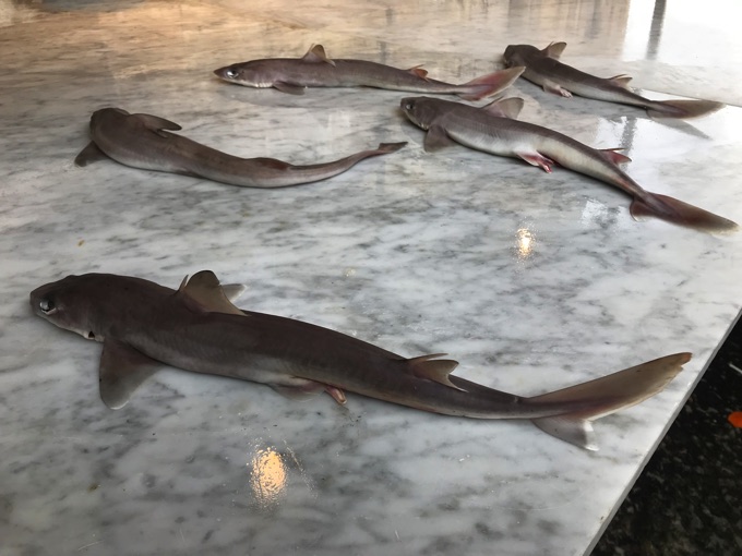 時化が続いたバッラロー市場に並ぶ魚は、いつもと様子が異なり…サメも並んでいました。