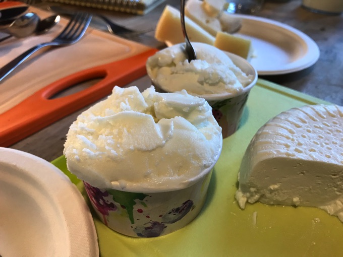 ロビオラや”ヤギのパルミジャーノ”などの自家製チーズと自慢のジェラートを試食させていただきました♪