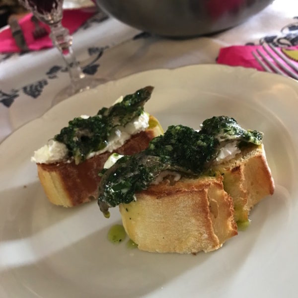 アンティパストは、生地にポテトを練り込んだ手作りのポテトのパンにトロリとアッチューゲ・アル・ヴェルデを乗せて。熱々のバーニャカウダを自家製野菜でシャクシャクいただき、手打ちタヤリンをバターとセージと、煎りたてのノッチョーレで!