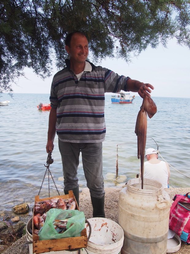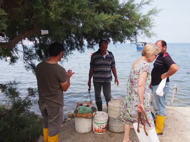 釣り船から降りて、ダイレクトに直売する移動式魚屋さんでした〜。