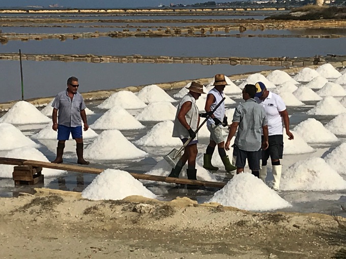 海水をそのまま引き込み天然塩を収穫するマルサラの塩田は、