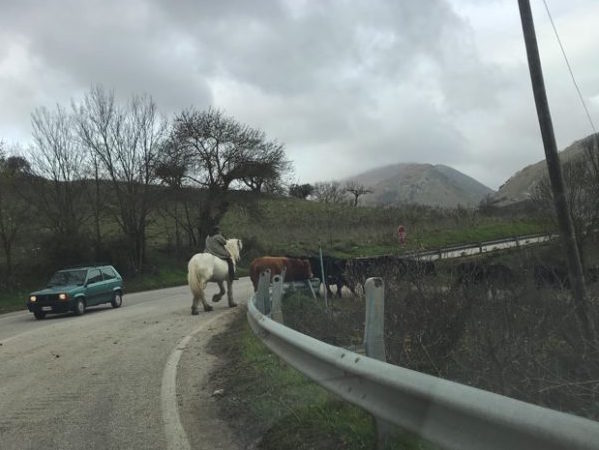 まずは、道中の模様から。牛や羊が道路横断中でしばし停車…はシチリアあるある風景です。