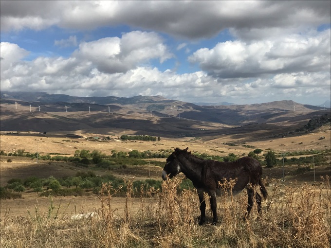 置き物のようなロバが草を食む…シチリア西側典型的な内陸部の風景!