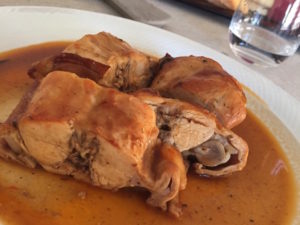 サラミのアンティパストに、名物の子ウサギなどなどを満喫。食べきれなかった料理は、お持ち帰りして夕食に…。夕食の予定はキャンセルし、貸切アパルタメントでお過ごしいただきました。