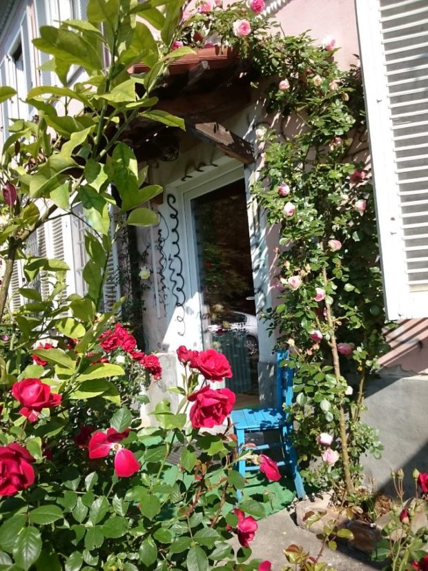 お部屋の入り口もバラのアーチが囲みます。朝は、より香り立つバラやレモンの花。朝からいきなり癒されます!