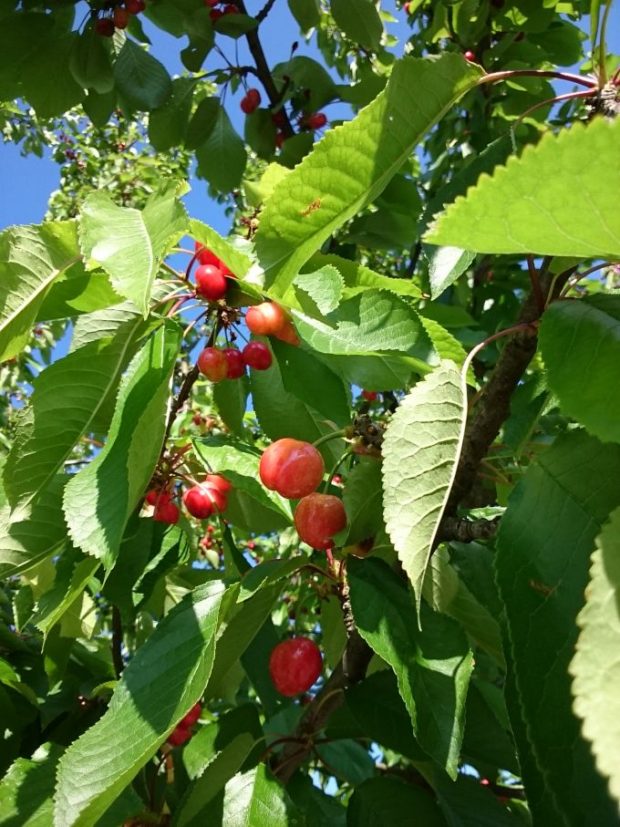 パパーベリ(ケシ)が咲くお散歩道。おや、サクランボが実をつけてますよ。