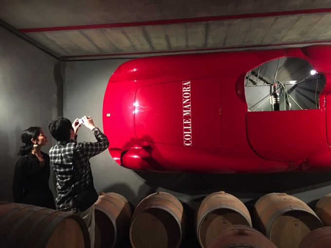 ワイナリーでフェラーリが見守るバリックルームを見学