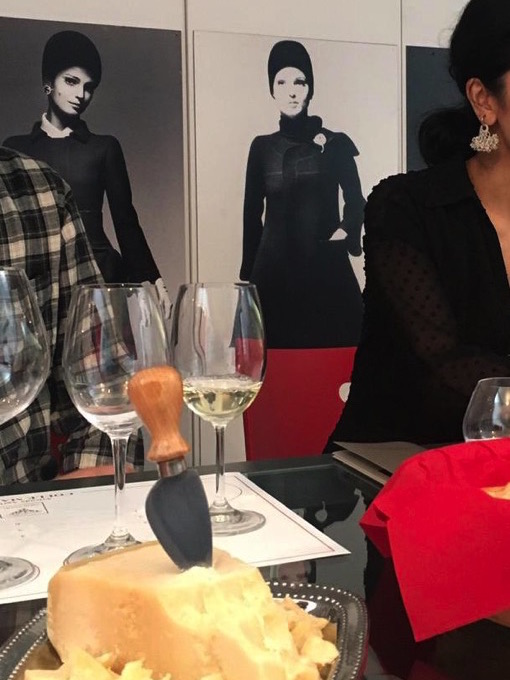 ミラ・ショーンの歴代デザインが飾る部屋でスタイリッシュに試飲をお楽しみただきました♪
