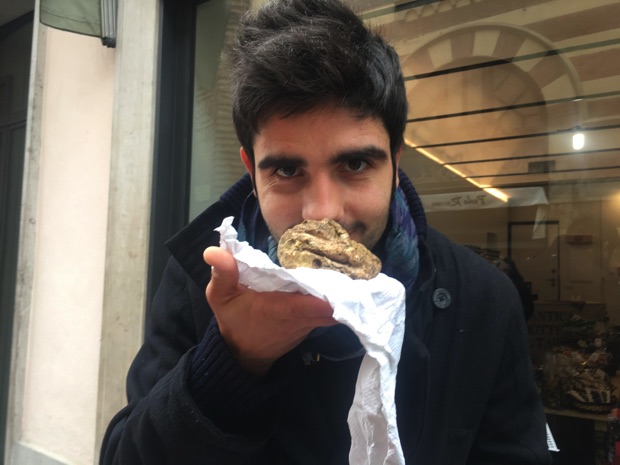 旧市街のメインストリートを歩けば、白トリュフに当たる…。屋台を出しているお店もあります。