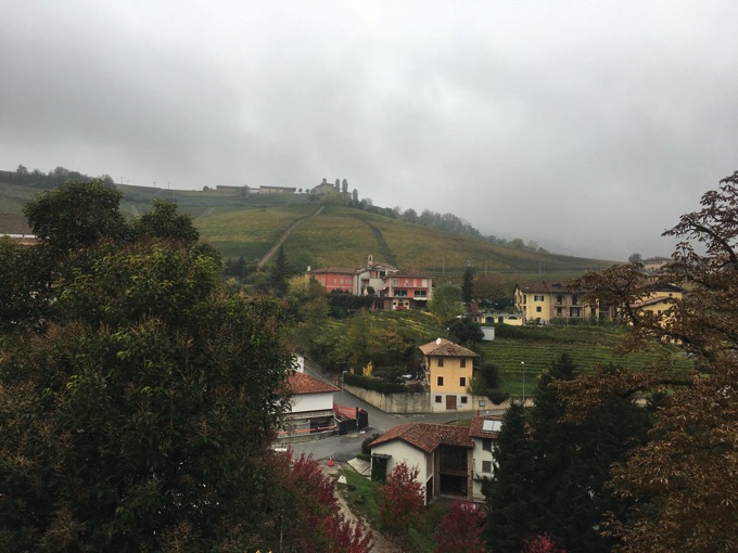 霧がかかる”いかにもピエモンテ”の典型的な風景を眺めながら、バローロのワイナリー1軒目で見学&試飲をたっぷり。