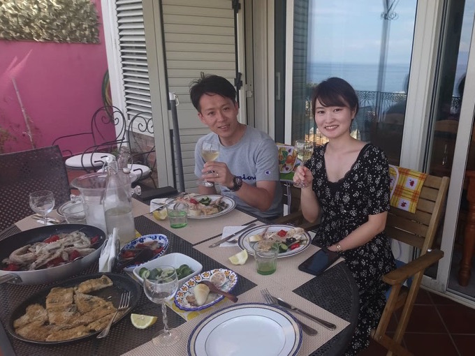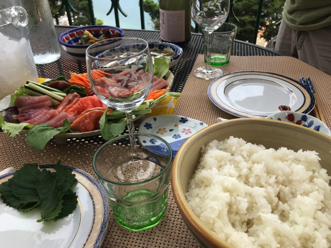 メニューは新鮮魚介で手巻き寿司!とイワシのマリナータや野菜のシンプルなシチリア料理あれこれ。