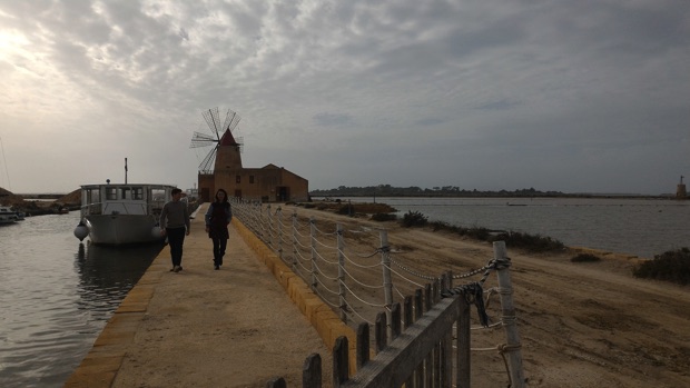 石畳が続くかわいらしいエリチェの旧市街でランチ&お散歩したら、下界に降りて…海沿いを走り、シチリア最先端の町マルサラへ。